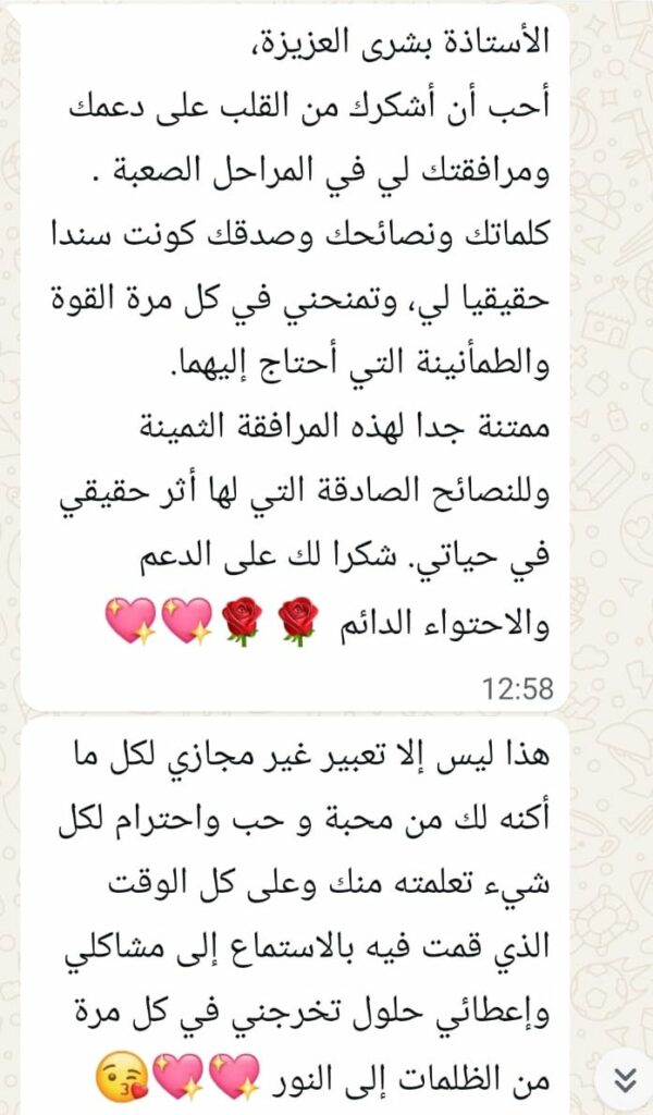 كل هذا في بيئة آمنة بإنصات و بدون احكام مع الأستاذة بشرى